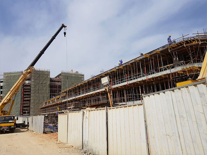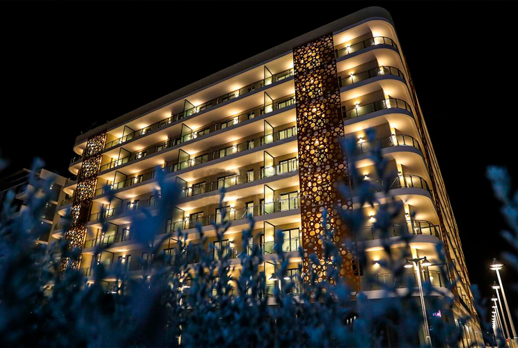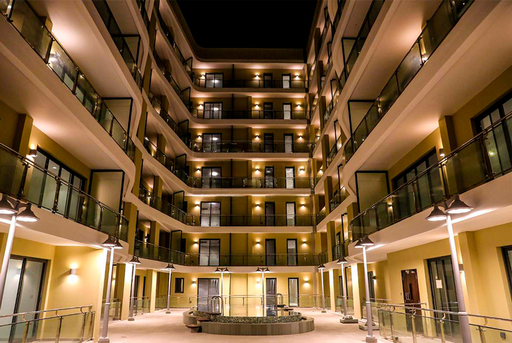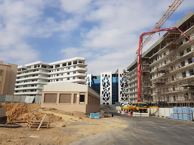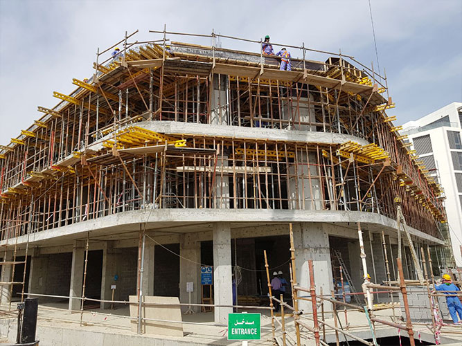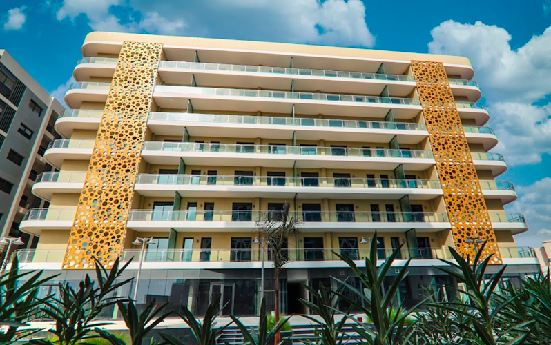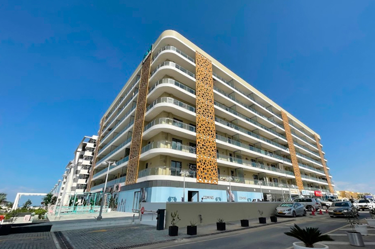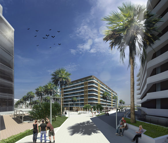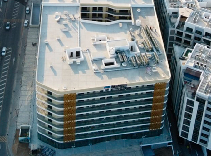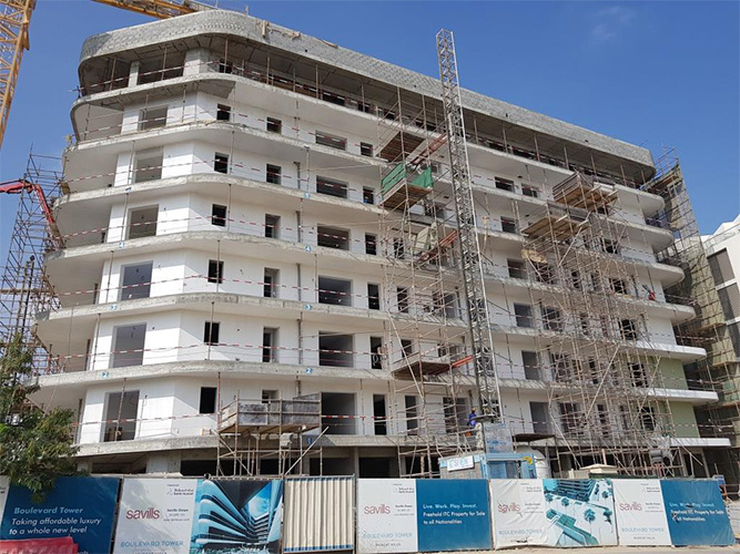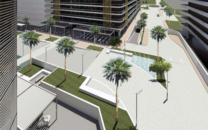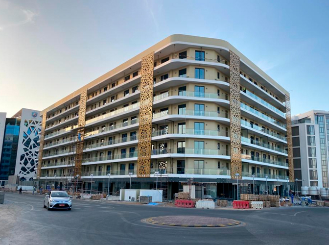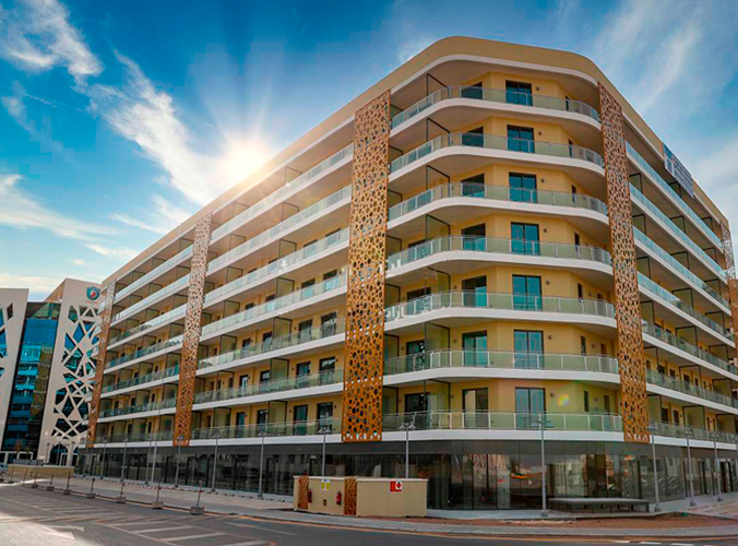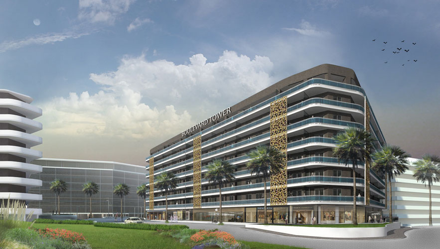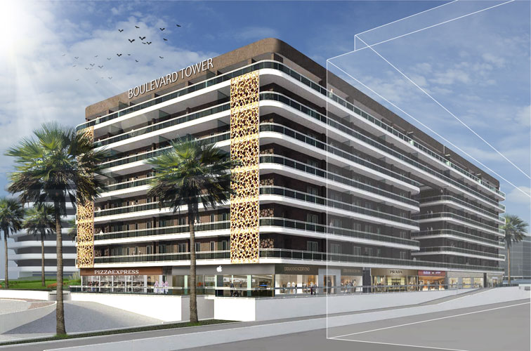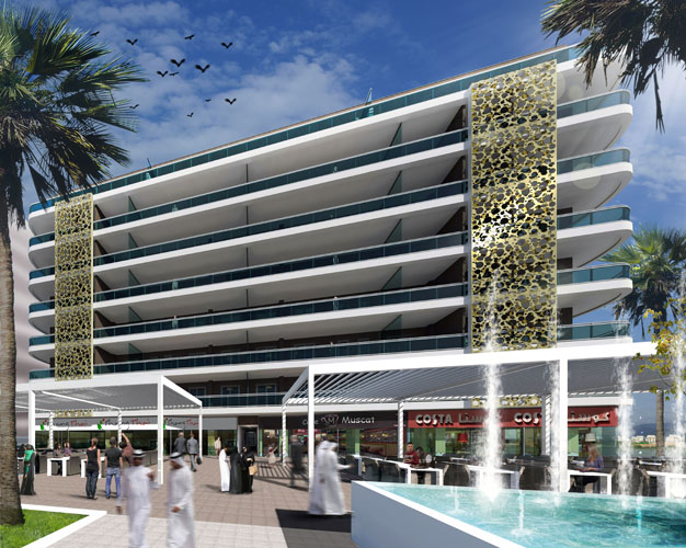 L’edificio è inserito all’interno del Muscat Hills Commercial Park (“The Boulevard”) e si compone di due livelli interrati destinati a parcheggi, un piano terra con destinazione commerciale e sette piani destinati alla residenza. A partire dalla quota di copertura del piano terra, la pianta dell’edificio si conforma a “C” richiudendosi al sesto e settimo piano.