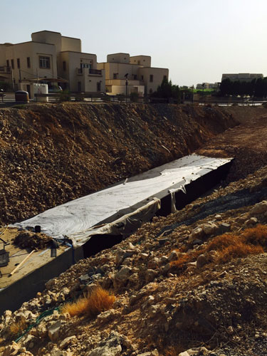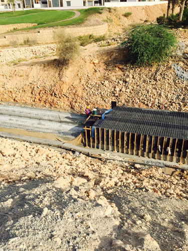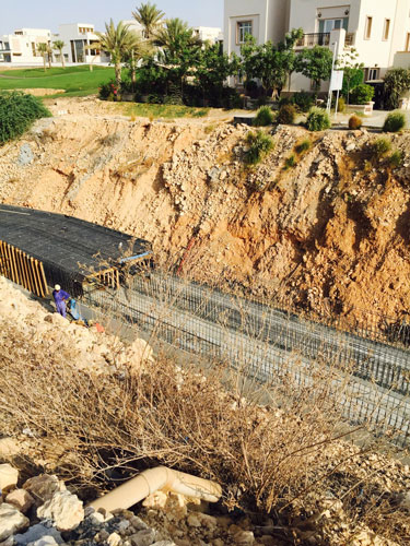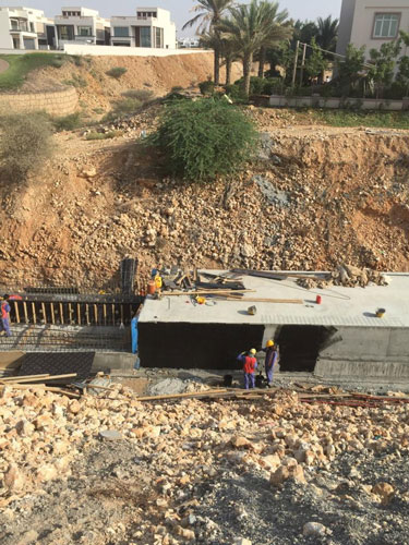 L’opera infrastrutturale si inserisce nell’ambito degli interventi di riqualificazione dell’area interessata dal Muscat Hills Golf & Country Club finalizzati ad una più idonea sistemazione delle aree fruibili dagli utilizzatori del compendio edilizio/sportivo. Nello specifico si tratta del prolungamento di un grande sistema di regolarizzazione ed interramento dell’alveo di uno dei Wadi che scorre internamente all’area in modo da evitare effetti di scalzamento sugli edifici circostanti in seguito ad eventi meteorici che, se pur in numero limitato durante l’anno, hanno sempre carattere torrentizio con significativi innalzamenti del pelo libero.
